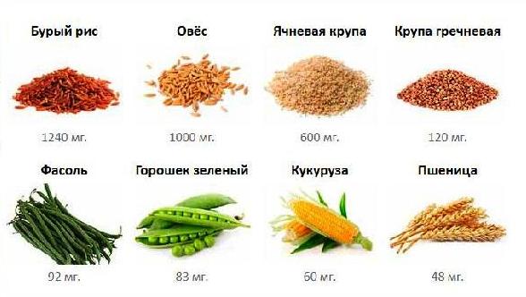 Кремний в продуктах питания — крупы, зерновые, бобовые, мг/100г.